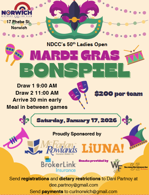 Little Rockers/ Juniors/Seniors: Nov 2nd. Facilitated by Certified Curling Coaches. If you are interested in assisting with this program, please email curlnorwich@gmail.com.